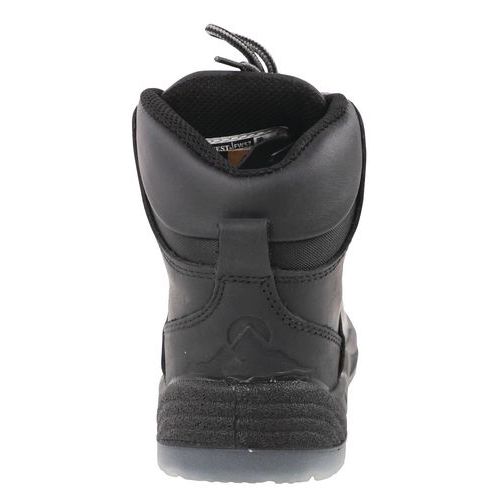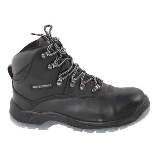 This S3 boot features a waterproof and breathable membrane that is perfect for use in all conditions. Steel toecap and midsole for total protection with a tough TPU outsole for greater stability and abrasion. Waterproof membrane for dry foot comfort. Angled top line for better fit and leg flexibility. Back pull-tab for ease of getting onto the foot. Padded collar for added comfort. Protective steel toecap. Steel midsole. Anti-static footwear. Energy absorbing seat region. SRC - Slip resistant outsole to prevent slips and trips on ceramic and steel surfaces. Fuel and oil resistant outsole. Dual density sole unit. Wide fitting. CE certified. UKCA marked. Full grain leather for long lasting protection.