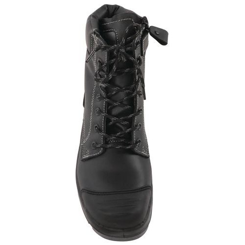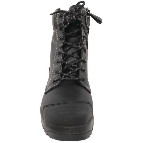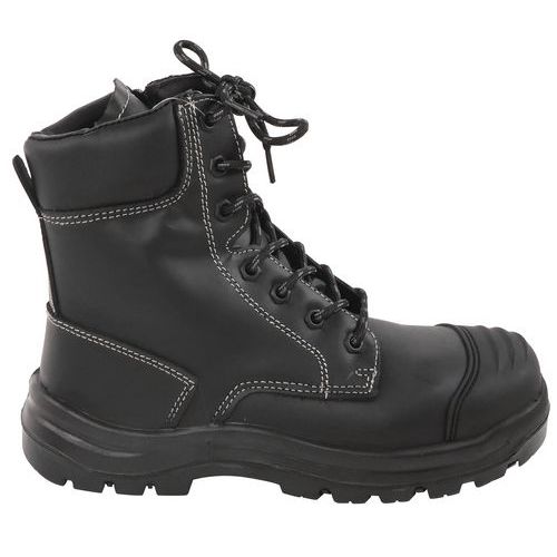 The full-grain leather upper provides complete protection and a barrier to all weather conditions. High lace-up style with a robust zip for comfortable and reliable support in rugged environments. Injected PU/Rubber outsole for supreme grip and energy absorption. Moisture-wicking inner lining provides reliable protection against cold, dampness and heat. Robust internal-leg zip for enhanced comfort. Protective TPU scuff cap for high impact. Innovative outsole flex zones increase flexibility and stability for excellent support and comfort. Direct injected PU/rubber outsole for supreme grip and energy absorption. Heat-resistant outsole 300ºC. CE certified. UKCA marked. Protective steel toecap. Pierce-resistant steel midsole. Anti-static footwear. Water resistant upper to prevent water penetration. SRC - Slip-resistant outsole to prevent slips and trips on ceramic and steel surfaces. Fuel and oil-resistant outsole. Cold insulation. Heat insulation for added warmth in cold environments.