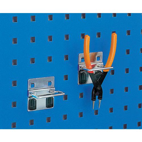 Hang your pliers on this closed bracket. Sturdy model 6mm thick. Install the bracket in the blink of an eye using the plastic safety clips. Made in UK Customer warranty : 3 years