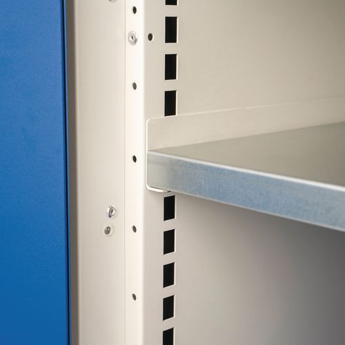 Scuff-resistant shelving is adjustable on a 25mm pitch and has a strength of up to 100kg UDL capacity.