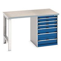 Heavy-duty braced steel frame boasts up to1200kg UDL - the highest UDL offered by Bott. Differently sized drawers give an efficient way to store tools and parts. 40mm thick worktop has a 2mm grey linoleum surface with plastic edge-banding, offering resistance to water, oils, acids and chemicals. The drawers are reinforced and fully lockable, with a central 3 point locking system for safety and security. The drawers have 100% roller bearing slides, allowing easy access to the entire drawer, even when full. Simple self-assembly with full instructions provided. The powder-coated finish is resilient and looks professional.