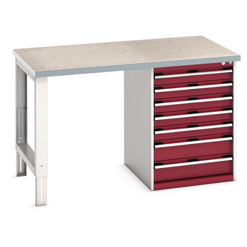 Heavy-duty braced steel frame boasts up to1200kg UDL - the highest UDL offered by Bott. Differently sized drawers give an efficient way to store tools and parts. 40mm thick worktop has a 2mm grey linoleum surface with plastic edge-banding, offering resistance to water, oils, acids and chemicals. The drawers are reinforced and fully lockable, with a central 3 point locking system for safety and security. The drawers have 100% roller bearing slides, allowing easy access to the entire drawer, even when full. Simple self-assembly with full instructions provided. The powder-coated finish is resilient and looks professional.
