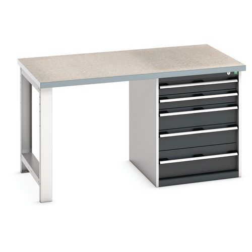 Bott Cubio Heavy Duty Lino Topped Workbench & Drawers - 840x1500x900mm