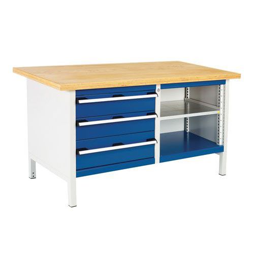 A heavy duty workbench with a 800kg UDL, 3 drawers and recessed storage area, for flexible storage