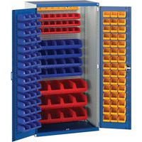 Bott Cubio workshop storage cabinet with louvre doors & 150 bins of differing sizes HxW 2000x1050mm