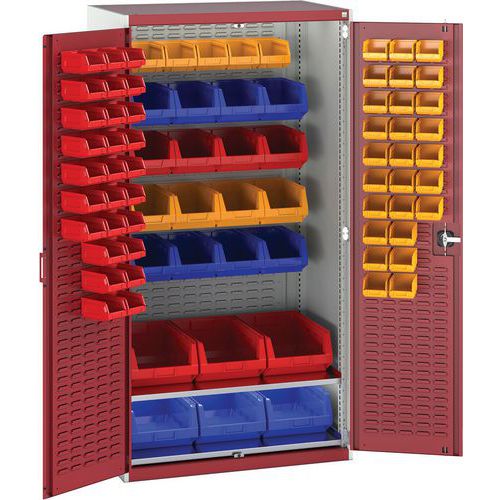 Bott Cubio workshop cabinet with 2 shelves, louvre doors & 81 bins of assorted size HxW 2000x1050mm