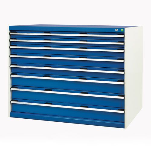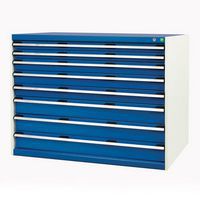 Fully lockable, ensuring security and safety. Multiple drawer sizes offer a organised and efficient method of storing tools/parts. All drawers have a 100% extension roller bearing slide and scuff-resistant galvanised pans, for smooth yet frequent use. Smart, powder coated finish is both resilient and professional. All cabinets are fitted with a drawer blocking mechanism to prevent more than one drawer from being opened at a time. The reinforced steel housing has a UDL capacity of 1 tonne. Drawers have a standard UDL of 75 kg. Optional worktops and top trays available - please see accessories.