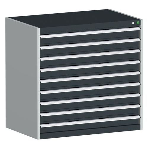 Fully lockable, ensuring security and safety. Multiple drawer sizes offer a organised and efficient method of storing tools/parts. All drawers have a 100% extension roller bearing slide and scuff-resistant galvanised pans, for smooth yet frequent use. Smart, powder coated finish is both resilient and professional. All cabinets are fitted with a drawer blocking mechanism to prevent more than one drawer from being opened at a time. The reinforced steel housing has a UDL capacity of 1 tonne. Drawers have a standard UDL of 75 kg. Optional worktops and top trays available - please see accessories.