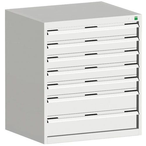 Fully lockable, ensuring security and safety. Multiple drawer sizes offer a organised and efficient method of storing tools/parts. All drawers have a 100% extension roller bearing slide and scuff-resistant galvanised pans, for smooth yet frequent use. Smart, powder coated finish is both resilient and professional. All cabinets are fitted with a drawer blocking mechanism to prevent more than one drawer from being opened at a time. The reinforced steel housing has a UDL capacity of 1 tonne. Drawers have a standard UDL of 75 kg. Optional worktops and top trays available - please see accessories.