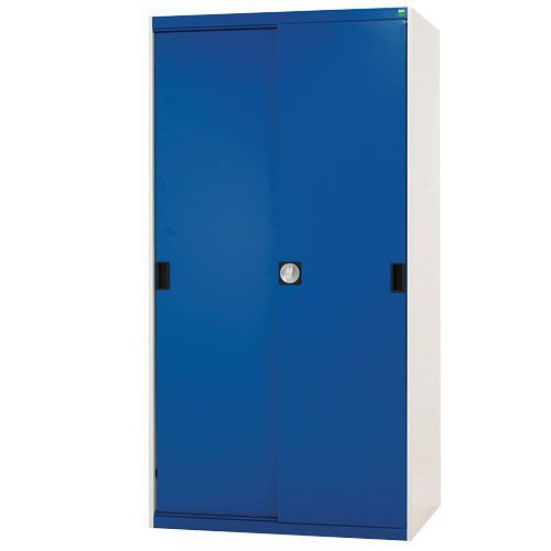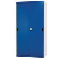 Sliding door is fully lockable, with a central 3 point locking system. Ideal for when office space is at a premium, with little door opening leeway needed. Robust welded steel reinforced frame for heavy duty environments. Galvanised steel shelving is wholly adjustable with a 25mm pitch. Powder coated frame is both smart and scratch resistant. Cupboard delivered assembled and ready to use.