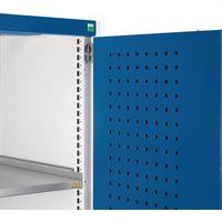 Ideal for extensive tool/part storage, the 4 inner sliding panels are very effective at saving space. Each louvre extending panel has an industrial 120kg capacity. The Perfo double doors allow tidy and flexible storage of additional tools, small parts and consumables. Fully lockable, ensuring security and safety. Smart, powder coated finish is both resilient and professional. The reinforced steel housing has a UDL capacity of 1.5 tonnes. Cupboard delivered assembled and ready to use.