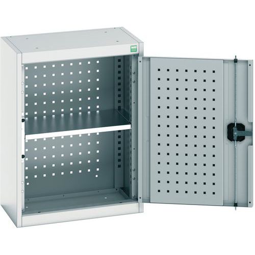 Tough, mountable wall cabinet with 1 shelf, perfo doors and back panel