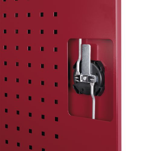 Easily adjust the height of the shelves in 25 mm increments. Lock the doors, which open to 180°, using the 3-point lock.