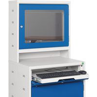 The slide-out keyboard tray and cupboard are both lockable.