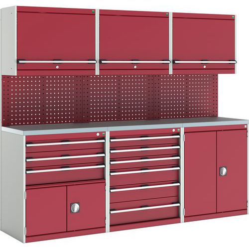 Bott Workshop, Frame colour: Light grey, Width: 2400 mm, Depth: 565 mm, Height: 2000 mm, Number of drawers: 9