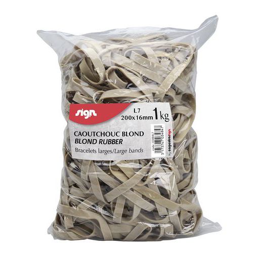 Box of natural-coloured rubber bands, 1 kg, Length: 200 mm, Thickness: 16 mm, Weight: 1 kg