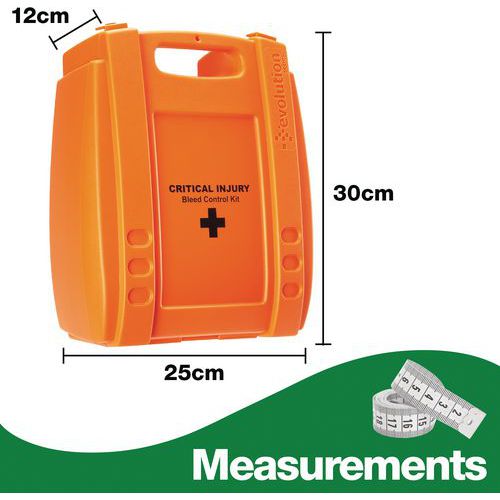 | Product Name | British Standard Bleed Control First Aid Kit, Colour: Orange, Weight: 1.185 kg, Kit size: Medium |