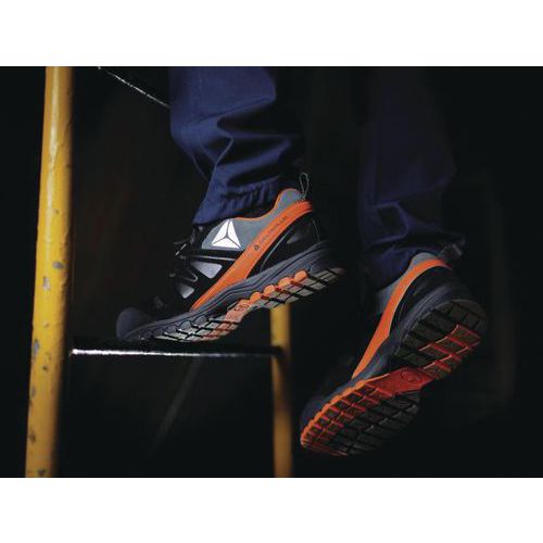 Fully non-magnetic low safety shoes. Reflective rear upper support for increased visibility. Padded collar and tongue to reduce pressure points at the lacing. Reinforced protection of the forefoot thanks to its rubber protective bumper.