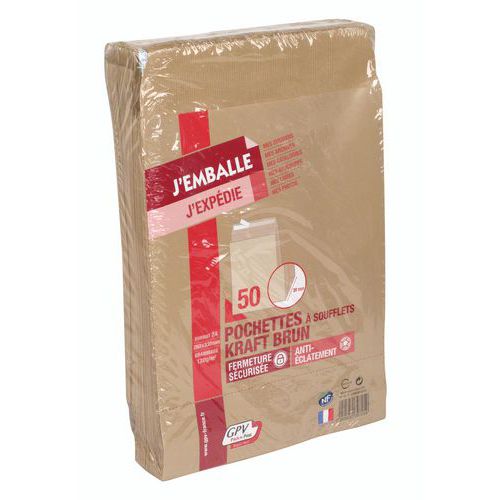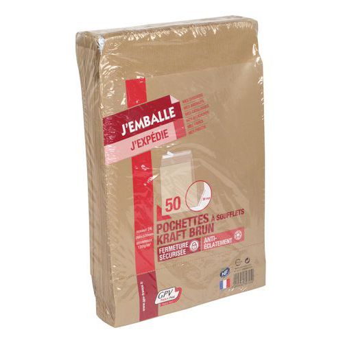 Brown Kraft envelope with gusset for sending books or thick documents. Kraft paper resistant to bursting and tearing. Quick and easy to seal thanks to the adhesive closure with protective strip.