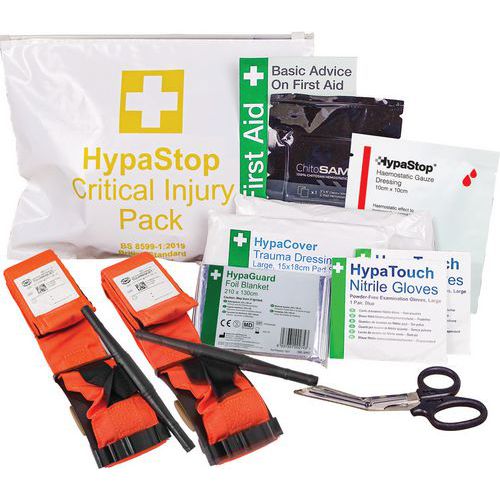 - The Critical Injury Pack complies with the updated British Standard for Workplace First Aid - BS 8599-1:2019.