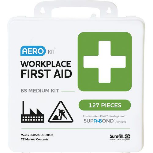SureFill™ BS Medium Kits have been designed to cater for compact workplaces and contain 127 first aid items.
