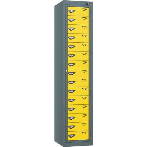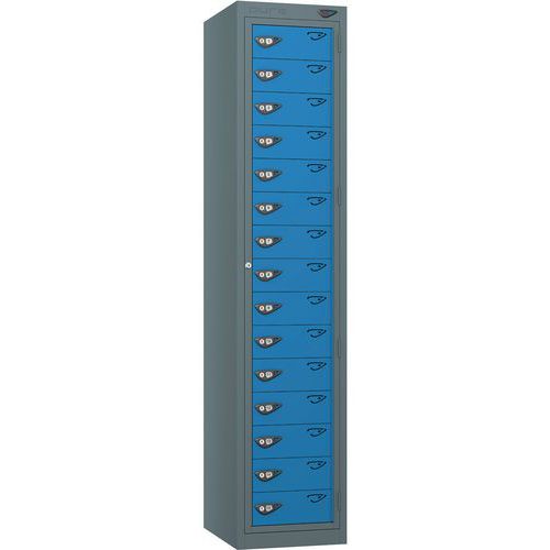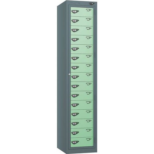 Manufactured in the UK with a certified carbon-zero rating, helping your organisation meet sustainability goals. Fifteen individual compartments allow secure storage for each employee, while a master door enables quick and easy restocking of all compartments at once. Each compartment and the master door have high-quality cam locks (keys included). Coated with BioShell technology to guard against bacteria and viruses, including COVID-19. Vented door design promotes airflow to reduce unpleasant odours. Suitable for heavy-duty commercial use and is built from premium-grade steel. Pre-drilled side panels allow lockers to be nested and bolted together for efficient storage banks. Meets BS4680:1990 standards and carries FlameZero certification for added peace of mind. 10-Year Guarantee. Ideal for manufacturing plants, healthcare facilities, hospitality or laboratories. Customer warranty : 10 years