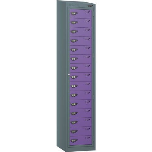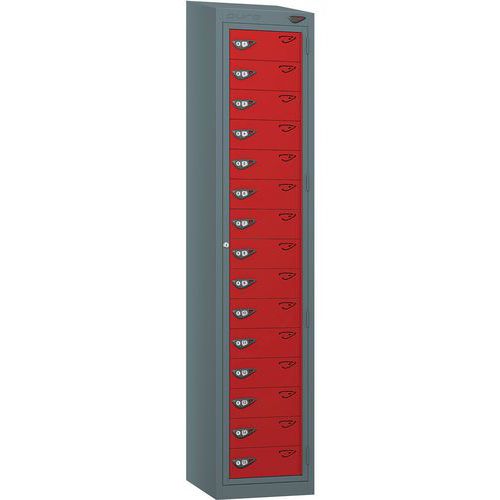 Manufactured in the UK with a certified carbon-zero rating, helping your organisation meet sustainability goals. Fifteen individual compartments allow secure storage for each employee, while a master door enables quick and easy restocking of all compartments at once. Each compartment and the master door have high-quality cam locks (keys included). Coated with BioShell technology to guard against bacteria and viruses, including COVID-19. Vented door design promotes airflow to reduce unpleasant odours. Suitable for heavy-duty commercial use and is built from premium-grade steel. Pre-drilled side panels allow lockers to be nested and bolted together for efficient storage banks. Meets BS4680:1990 standards and carries FlameZero certification for added peace of mind. The sloping design keeps the top clear, promoting tidiness and safety. 10-Year Guarantee. Ideal for manufacturing plants, healthcare facilities, hospitality or laboratories.