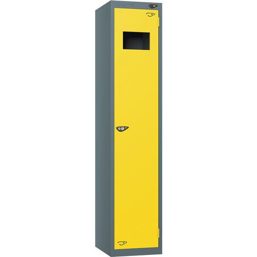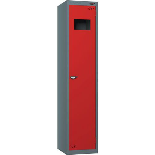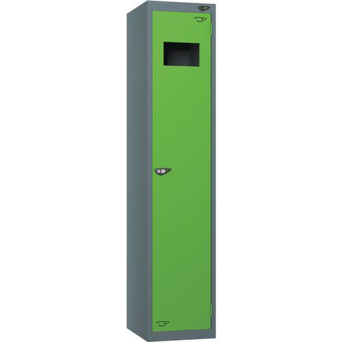 Manufactured in the UK with a certified carbon-zero rating, helping your organisation meet sustainability goals. A large single compartment with a high-quality cam lock (keys included) keeps garments safe until collection. A convenient top opening allows employees to deposit uniforms and workwear quickly. Coated with BioShell technology to guard against bacteria and viruses, including COVID-19. Vented door design promotes airflow to reduce unpleasant odours. Suitable for heavy-duty commercial use and is built from premium-grade steel. Pre-drilled side panels allow lockers to be nested and bolted together for efficient storage banks. Meets BS4680:1990 standards and carries FlameZero certification for added peace of mind. 10-Year Guarantee. Ideal for manufacturing plants, healthcare facilities, hospitality or laboratories. Customer warranty : 10 years