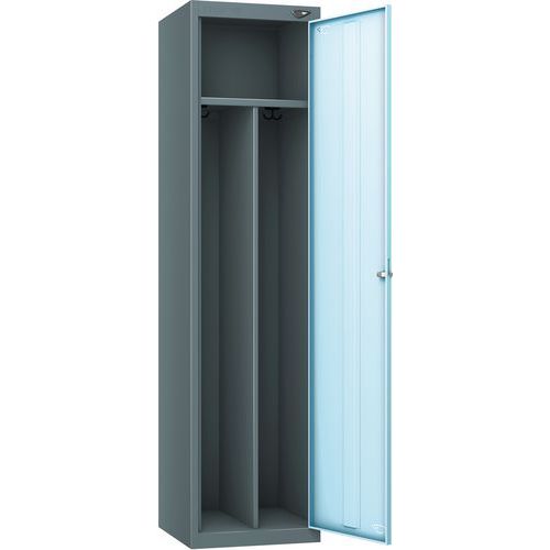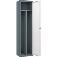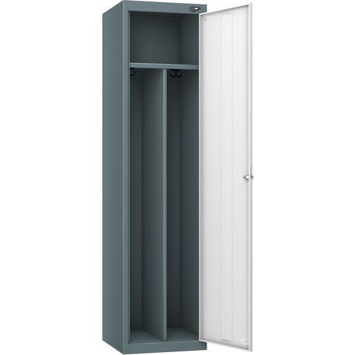 Manufactured in a state-of-the-art Carbon Zero factory. One compartment is designed for workwear and the second for a change of clean clothes, keeping them separated. Each compartment has a double coat hook for hanging clothing. Features a top hat shelf. The Bio-Shell antimicrobial coating helps stop the spread of nasty germs and viruses. Certified FLAMEZERO and tested to the latest BS standards. Robust 0.7mm & 0.9mm all steel construction and anti-intruder frame. Finished with a durable powder coat for ultimate longevity. Comes with pre-drilled nesting holes to help minimise unsightly gaps or creep. Fully recyclable at the end of life, ideal for environmentally conscious businesses. 10-Year Guarantee against manufacturing defects. Ideal for use in various environments such as manufacturing, transport, maintenance and construction. A cam lock offers 3000 different serial combinations and includes two keys for enhanced security.