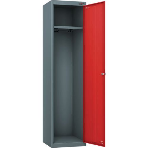 Manufactured locally with a certified carbon-zero rating. Extra-deep compartments and dual-section storage provide ample space for uniforms, gear, and personal items. Features a large main compartment with two coat hooks and a separate hat shelf for easy organisation. A single steel door with a high-quality cam lock (keys included) keeps contents safe. BioShell coating helps protect against bacteria and viruses, including COVID-19. The vented door design promotes airflow to reduce the build-up of unpleasant smells. Suitable for heavy-duty commercial use and is built from premium-grade steel. Pre-drilled side panels allow lockers to be nested and bolted together for efficient storage banks. Complies with BS4680:1990 standards and includes FlameZero certification. 10-Year Guarantee. Ideal for police stations, healthcare workers or any role requiring secure, spacious uniform storage.