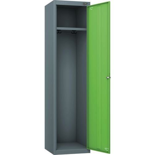 Manufactured locally with a certified carbon-zero rating. Extra-deep compartments and dual-section storage provide ample space for uniforms, gear, and personal items. Features a large main compartment with two coat hooks and a separate hat shelf for easy organisation. A single steel door with a high-quality cam lock (keys included) keeps contents safe. BioShell coating helps protect against bacteria and viruses, including COVID-19. The vented door design promotes airflow to reduce the build-up of unpleasant smells. Suitable for heavy-duty commercial use and is built from premium-grade steel. Pre-drilled side panels allow lockers to be nested and bolted together for efficient storage banks. Complies with BS4680:1990 standards and includes FlameZero certification. 10-Year Guarantee. Ideal for police stations, healthcare workers or any role requiring secure, spacious uniform storage. Customer warranty : 10 years