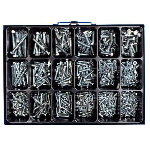 - Assortment of electroplated steel and nuts screws class 8.8.