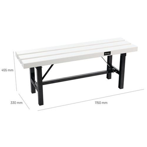 White PVC bench - Self-assembly - Manutan Expert White PVC bench for indoor use. Moisture-resistant design that is easy to clean. The lightweight structure is easy to assemble and to move. Simple and functional design, ideal for communal areas. Perfect for changing rooms, break rooms and entrance halls.