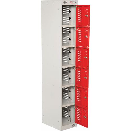 The 6 door anti-bacterial and high-security powered locker - ideal for safe, segregated battery charging.
