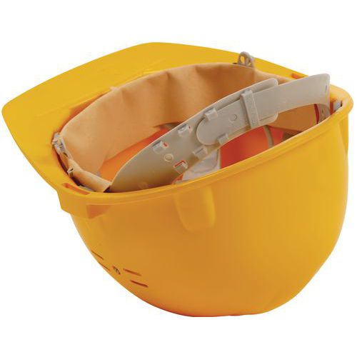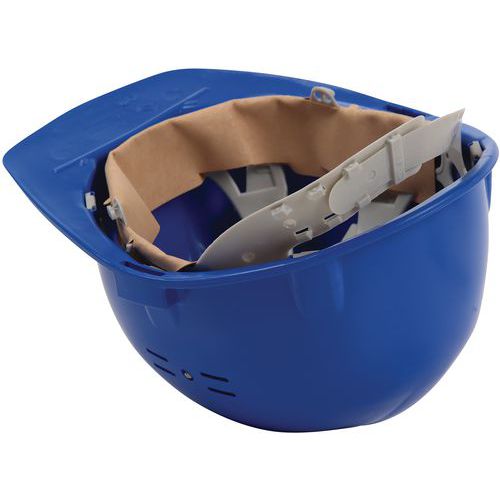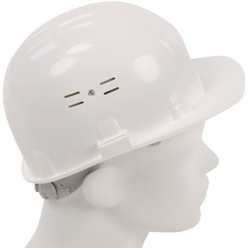 Classic II vented safety helmet - Manutan Expert Adjustable protective helmet made of UV-treated HDPE. Traceability: date of manufacture and batch ID indicated under the visor. Made in the EU CE Customer warranty : 3 years