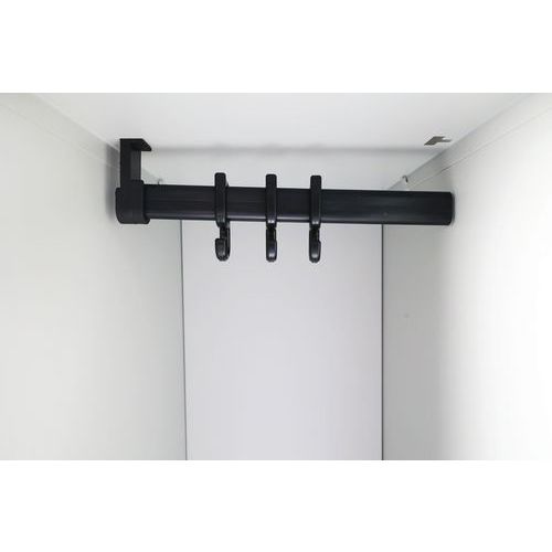 Top shelf featuring one rail with two hooks and wardrobe space at the bottom.