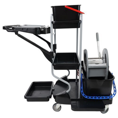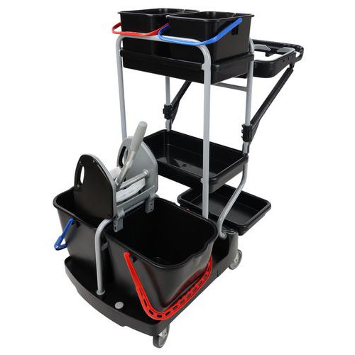 | Product Name | Cleaning Trolley/Janitor Cart, Capacity: 15 L, Colour: Black/grey, Height: 118 cm, Width: 76 cm |