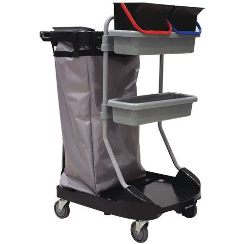 | Product Name | Cleaning trolley with bag holder, Material: Recycled polypropylene, Colour: Black/grey, Height: 112 cm |