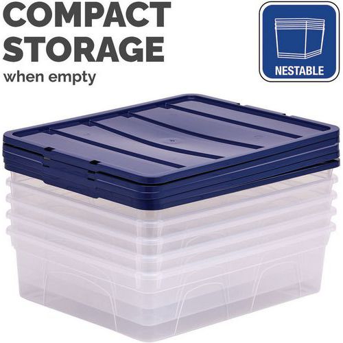Clear Lidded Plastic Storage Boxes - Nestable & Stackable - Fellowes