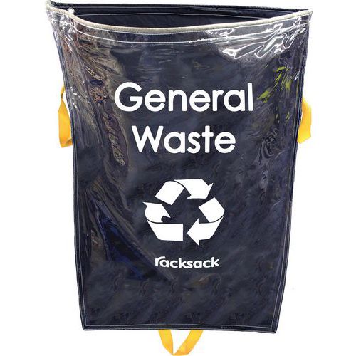 Racksack is the original market-leading solution for waste segregation in the industrial workplace. A simple and cost-effective system to keep you compliant with UK and EU waste segregation legislation. Makes it clear to see what’s in your Racksack. Enhances security measures to prevent theft. Clear front with blue backing. Choose from 10 standard designs – five with text, five with a symbol-only, and a blank version. Supplied with 2x S hooks.