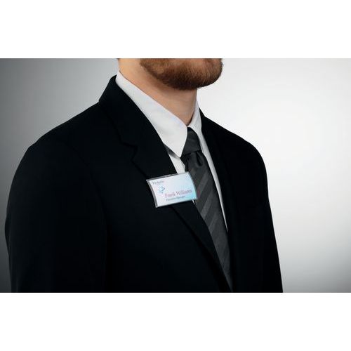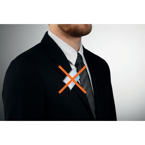 - Badge fitted with a powerful dual magnet for effective fastening to clothes and even thick garments, without damaging them.