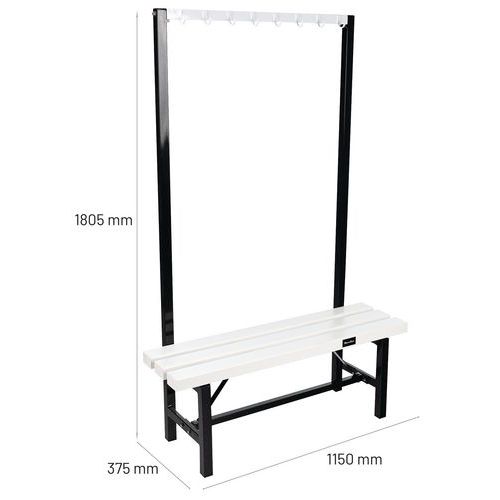 Cloakroom Bench - White PVC Slats - 8-16 Hooks - Single Side - Manutan Expert
