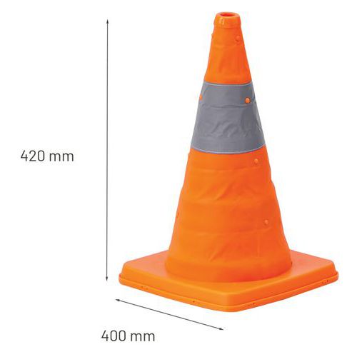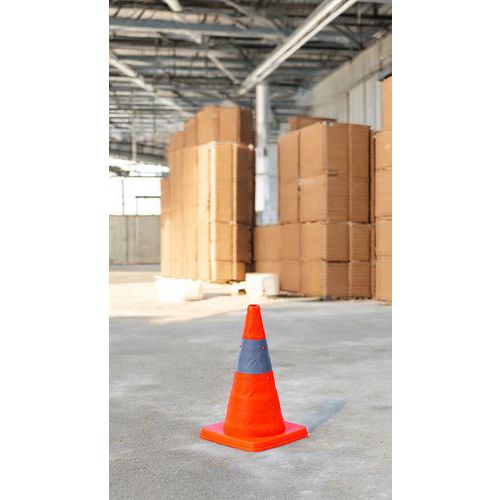 - The safety cone can be seen from a distance thanks to its bright reflective strip.