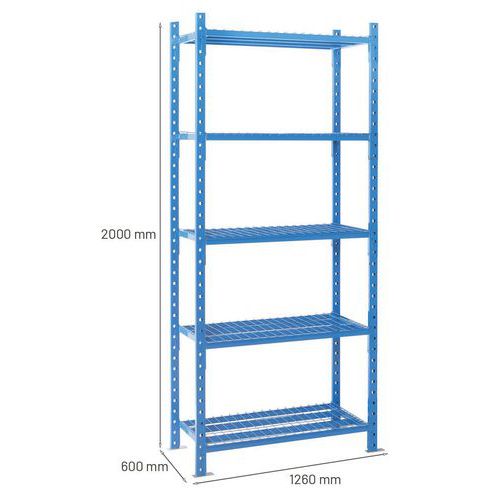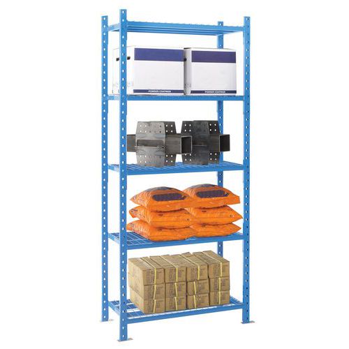 Solid and sturdy steel shelving with large load capacity. Reliable in the event of fire: fully ventilated with mesh shelves. Easy extension shelving simply add 1 or more add-on units.