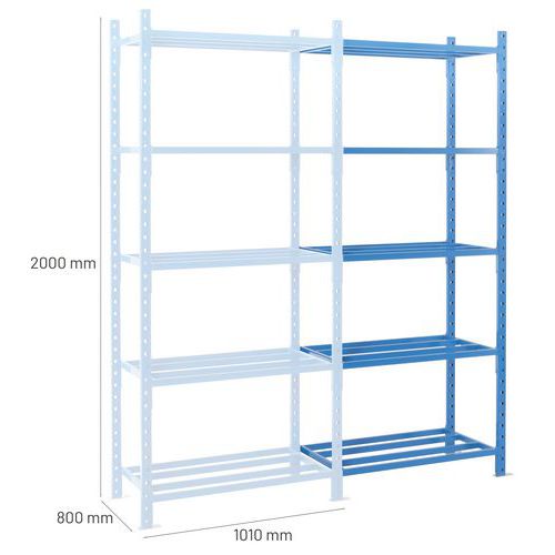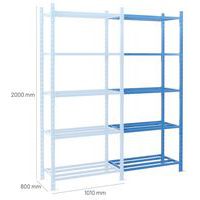 Very stable shelving with a high load capacity (up to 2.5 t.). Tubular shelf to keep objects well ventilated and for easy maintenance. Easily extend your shelving with 1 or more add-on kits.
