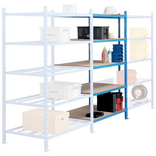 Very stable shelving with a high load capacity (up to 2 tonnes). Equipped with tubular racking for good ventilation of the items stored. Wooden platform provided for each shelf (for storing small objects). Easily extend your shelving with 1 or more add-on units.