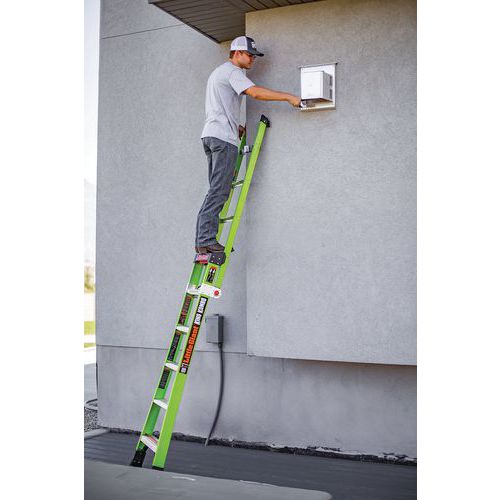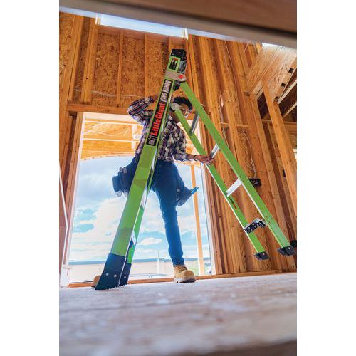 Non-conductive Hi-Viz green fibreglass makes the ladder more noticeable and safer from electrical discharges.