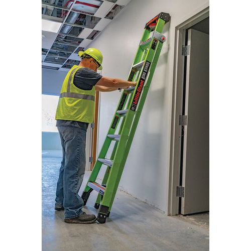 Non-conductive Hi-Viz green fibreglass makes the ladder more noticeable and safer from electrical discharges.