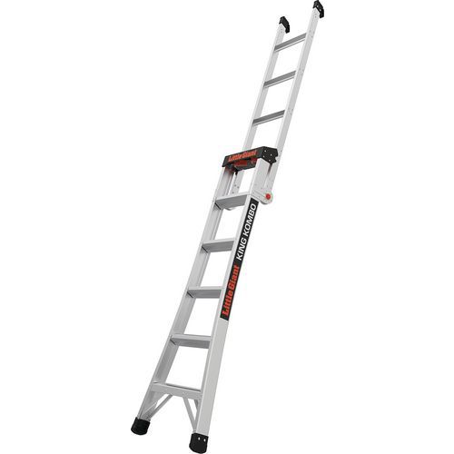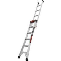 A combined extension ladder, leaning ladder and stepladder, in one lightweight package