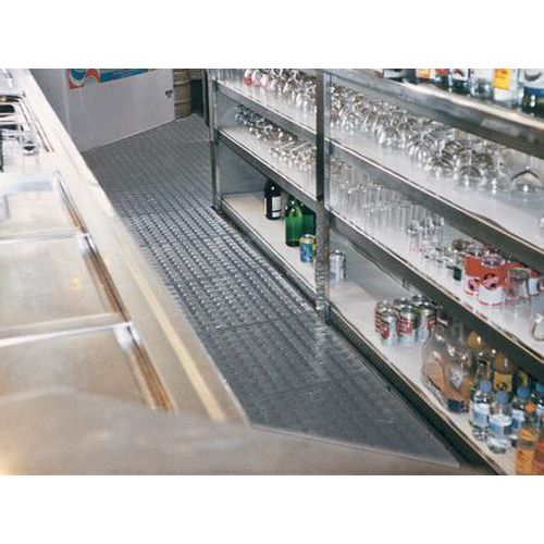 - The anti-slip grid design allows excellent fluid drainage, keeping the surface clear of debris or spills and promoting a safer work environment.
